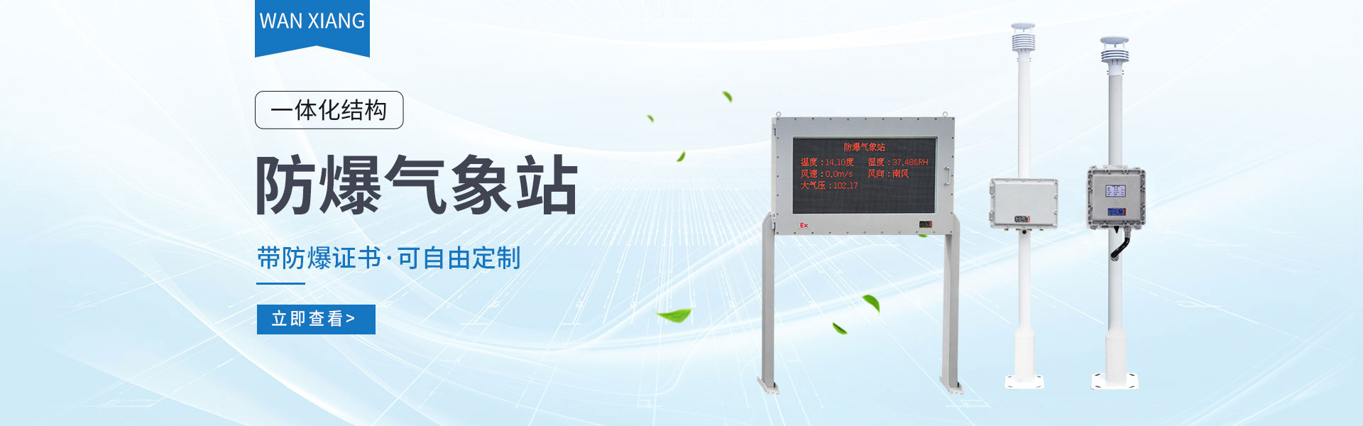 查看更多山東萬象環(huán)境科技有限公司官網主要產品有防爆氣象站,校園氣象站,農業(yè)氣象站,負氧離子監(jiān)測站,超聲波氣象站,歡迎咨詢19853697985!